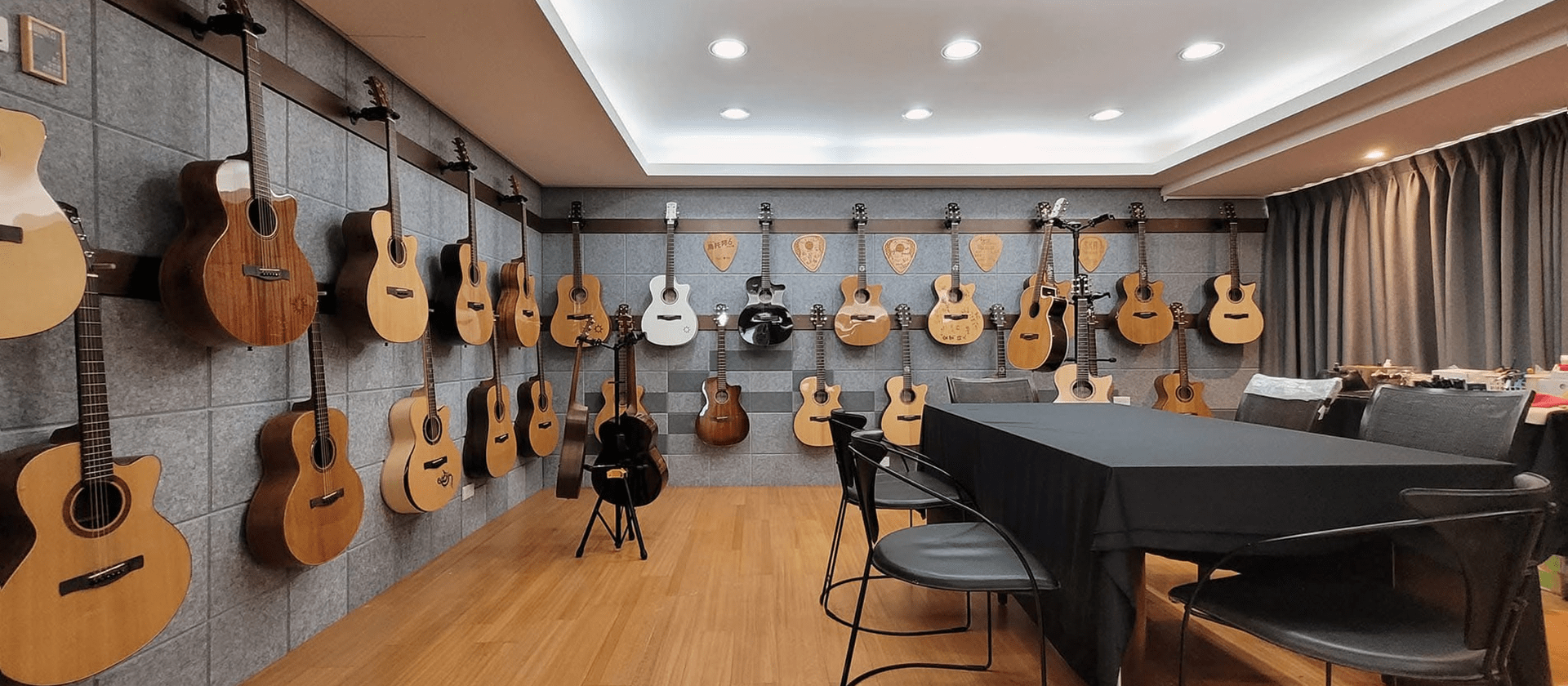每一把吉他,從木材挑選、自然乾燥熟成,到手工雕修與塑形,皆由工匠細膩打磨而成。