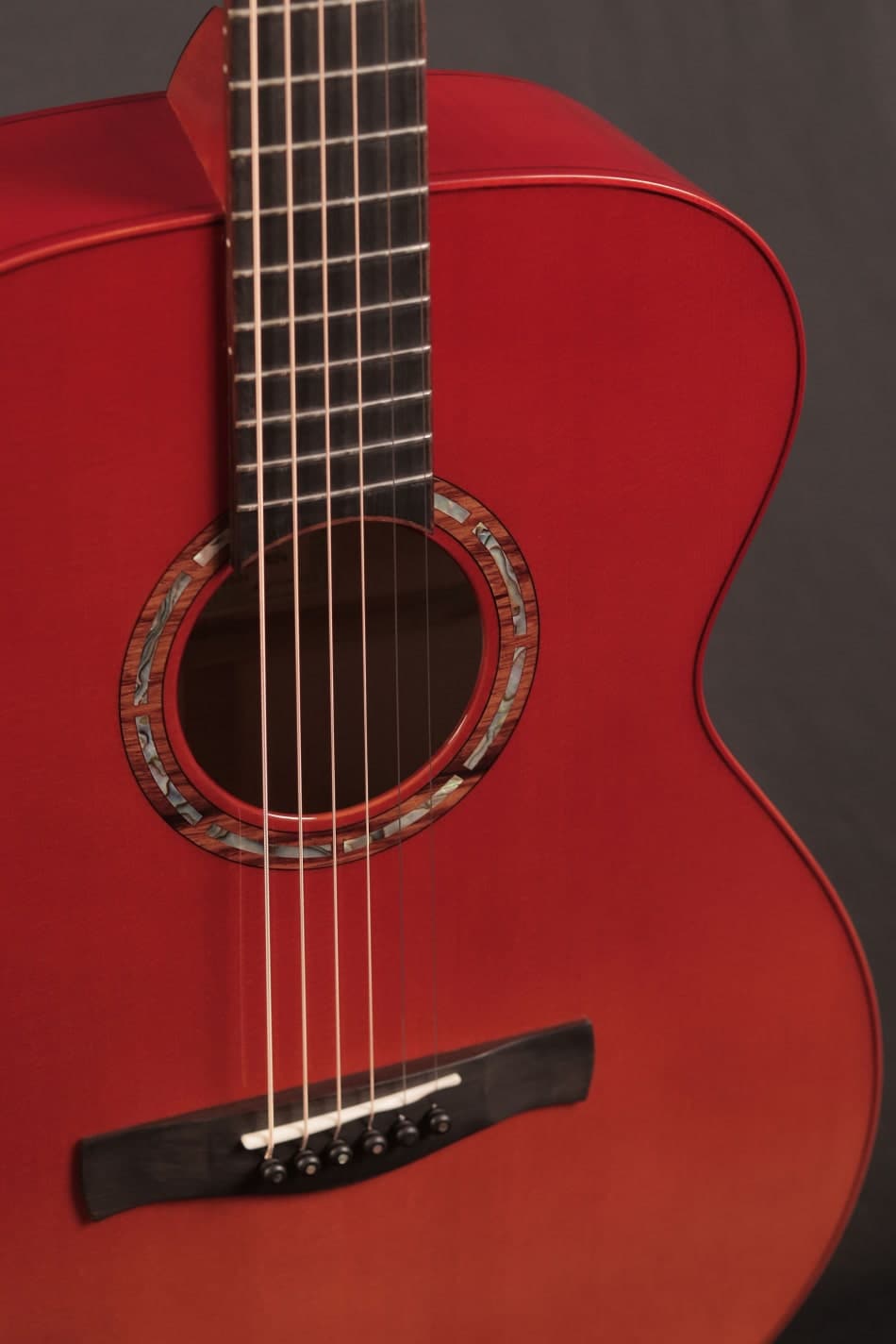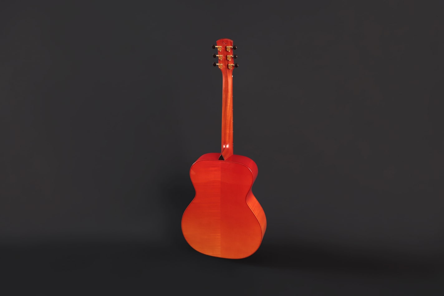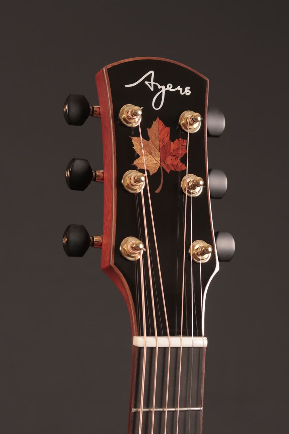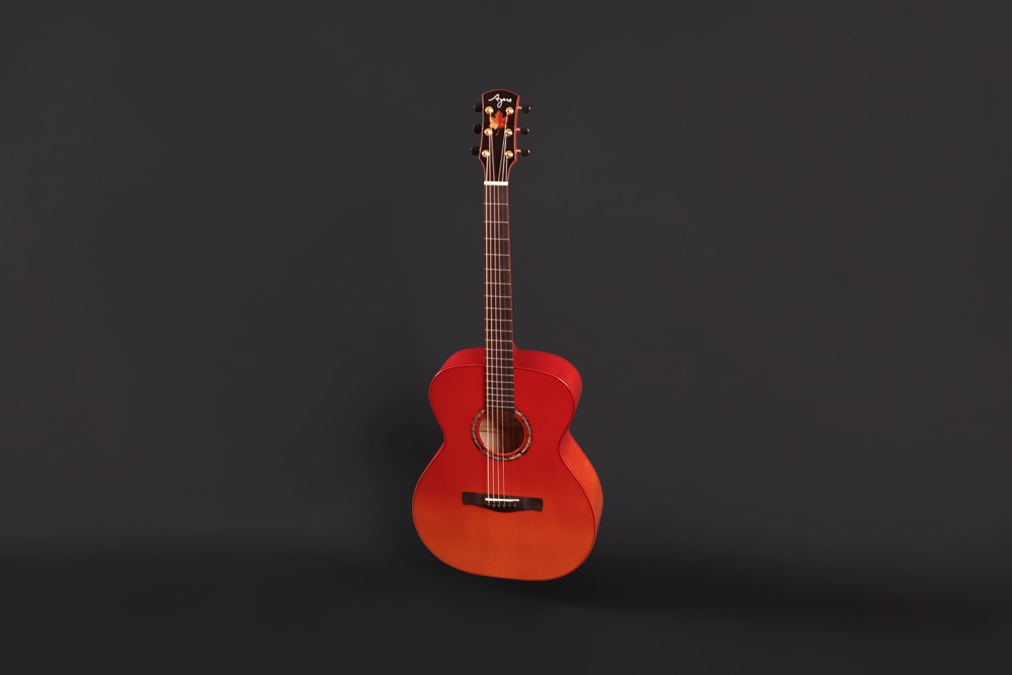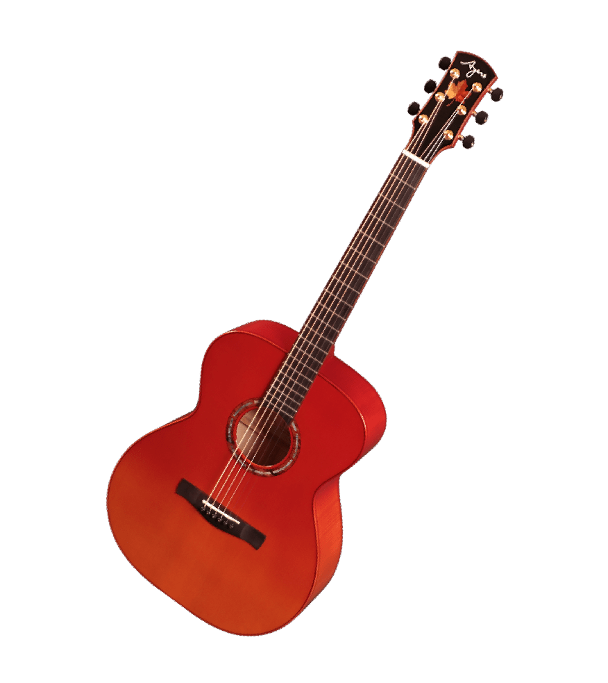採用英格曼雲杉面板與德國楓木側背板,搭配橘黃漸紅的楓葉噴漆與琴頭楓葉鑲嵌。 音色輕亮有顆粒感,如秋日微風拂過樹梢,靈動而通透。