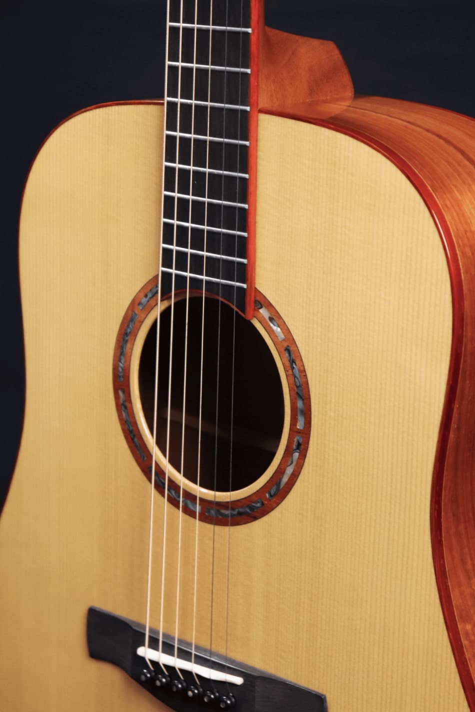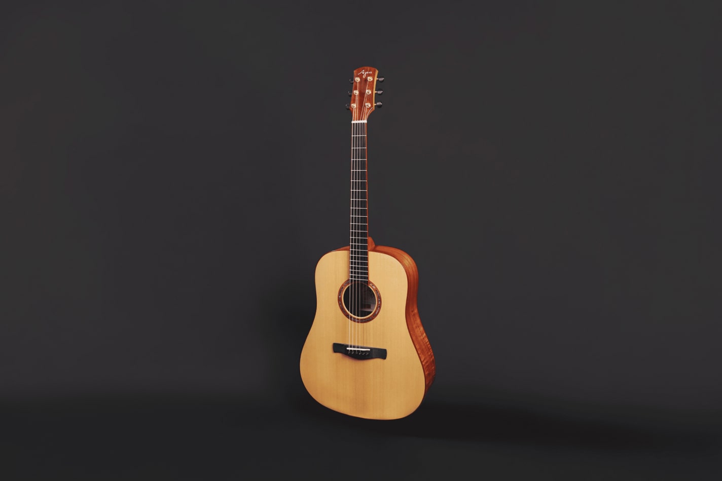 採用西提卡雲杉面板與 4A 級夏威夷相思木側背板,木紋流動立體,色澤金黃溫潤,流露天然韻味與豐富質感。音色靈動明亮,夏威夷相思木增添溫暖共鳴與細膩泛音,層次鮮明且富有延展性。