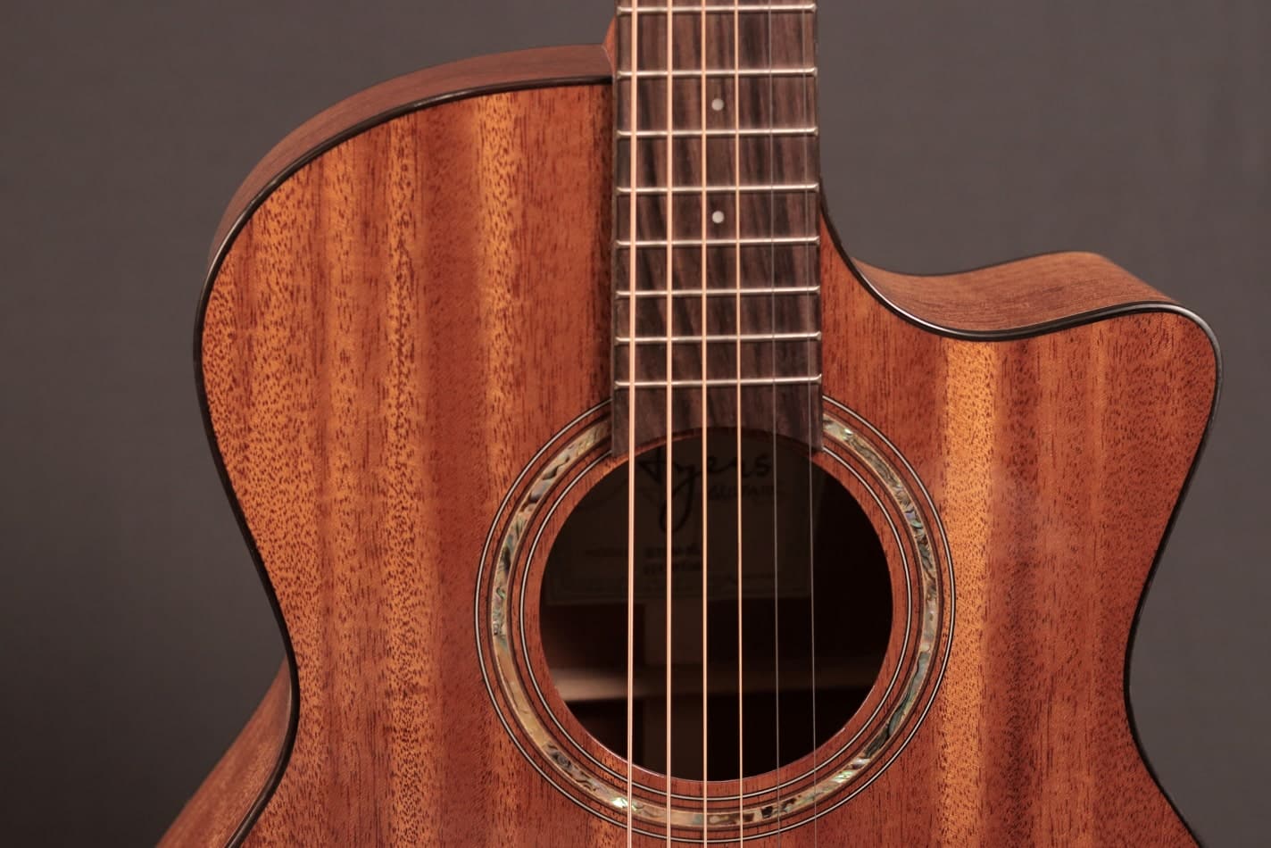 採用非洲桃花心木面板與夾板非洲桃花心木側背板,經典木材搭配,展現溫潤木紋與自然光澤,實用且百搭。 以更親民的價格呈現桃花心木的溫暖音色,中頻厚實飽滿,低頻緊實不混濁,高頻柔和順暢,均衡耐聽且適應多種演奏風格。