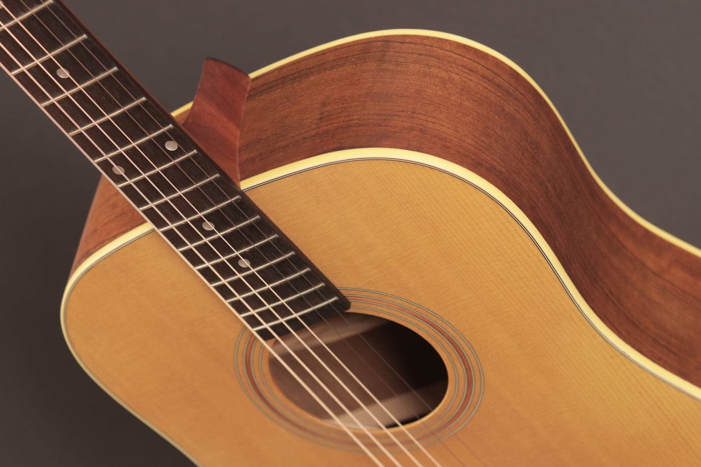 絕版限定之作,復古靈魂經典再現。由澳洲製琴師 Gerard Gilet 設計,融合老式工藝與自然乾燥木材,重現純粹美式聲響。西提卡雲杉搭配夾板胡桃木與白色護邊,木紋溫潤細膩、色澤深邃低調,展現自然層次與內斂質感。音色均衡耐聽,中頻厚實,響應清晰有層次。